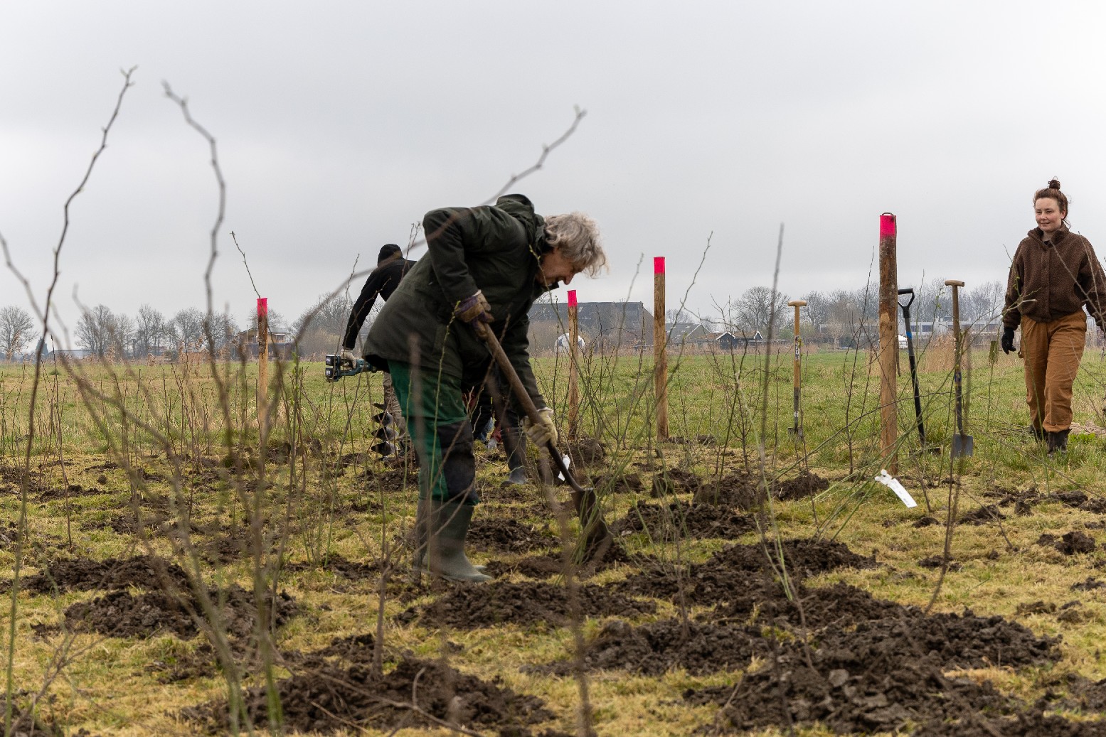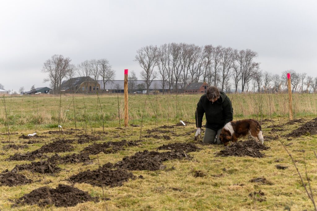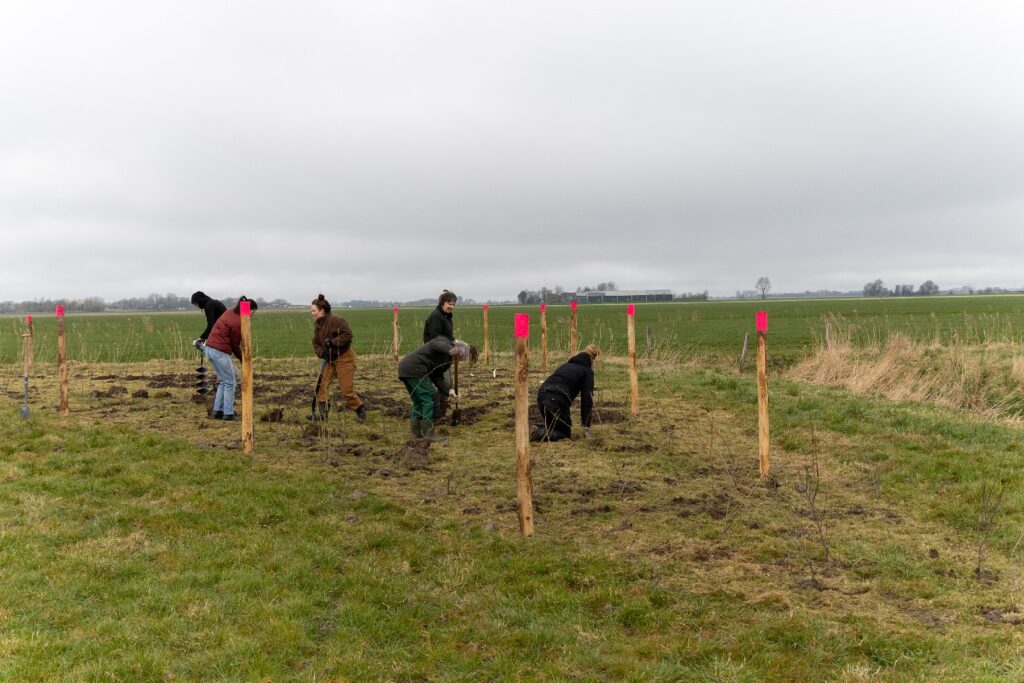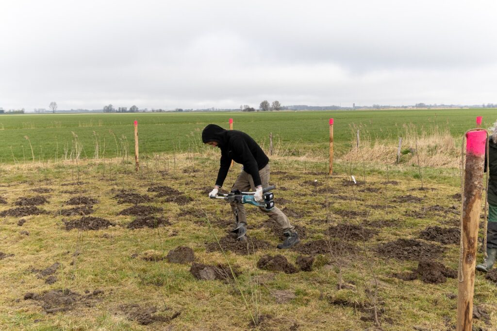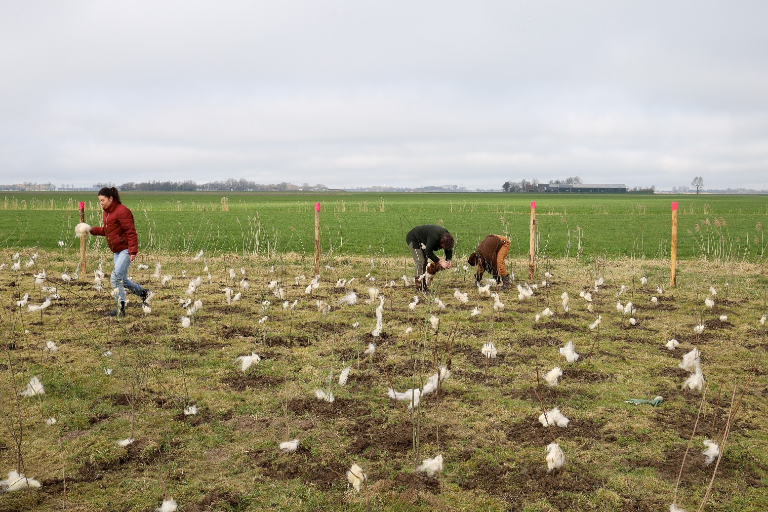 Afgelopen vrijdag hebben enthousiaste vrijwilligers, geholpen door mensen van Landschapsbeheer, zo’n 500 boompjes en struiken in de weilanden achter de wisselwoningen. Bedoeld als schuilmogelijkheid voor reeën en andere, ook kleine, zoogdieren en natuurlijk voor alle insecten, vogels en anderen de er gebruik van willen maken of voedsel van kunnen gebruiken. Om te voorkomen dat diezelfde reeën al meteen aan de bast gaan knabbelen en de struiken het niet overleven, is wol aangebracht op de stammetjes. Reeën houden niet van de geur van schapenwol namelijk.